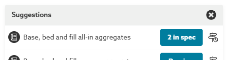 If your specification already contains one or more instances of a suggested clause that is displayed on the list, the blue button will have a title of 'x in spec' (where x is a number). The number displayed on the button indicates how many instances of the clause there are currently.
