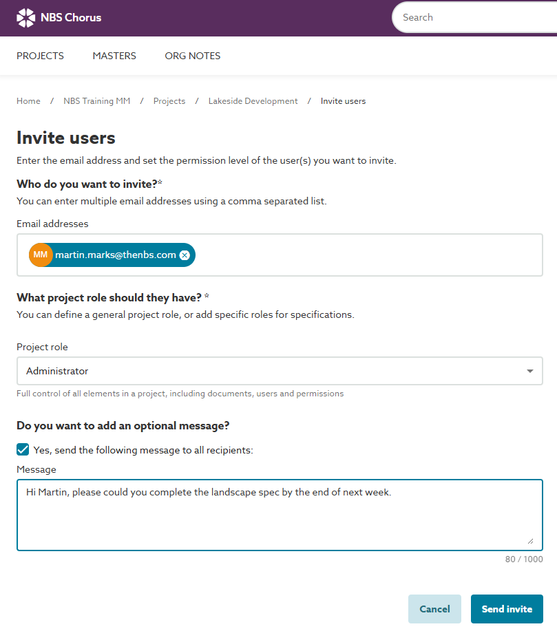 The first paragraph of the email will display the name of the person sending the invitation, the title of the project to which the invitation relates and the name of the Organization the project is located within.