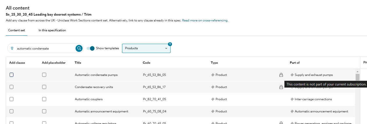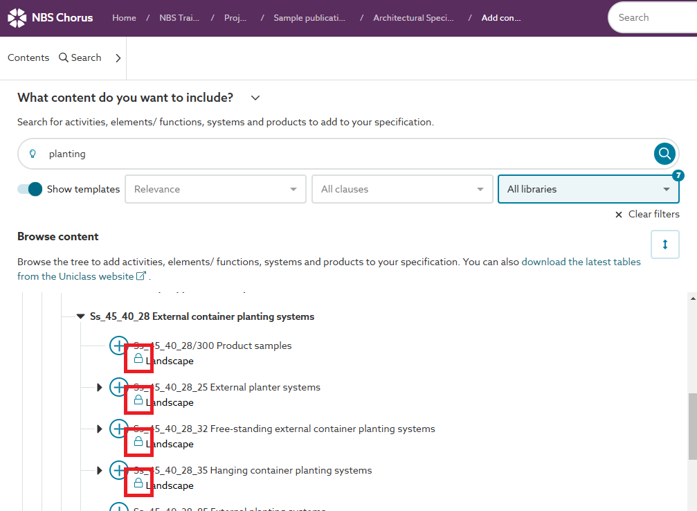 You can still add content with a padlock icon. When you add from a library not in your subscription, the platform will add a template. This allows you to author your specification clauses.