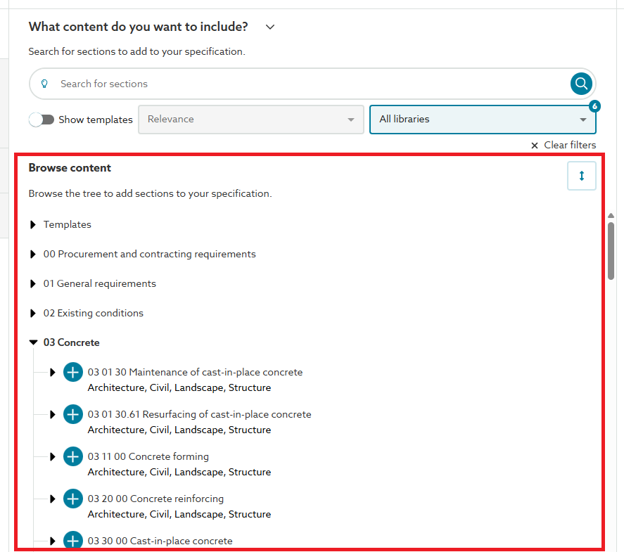 Lattira Spec/NBS Chorus now includes 'Browse content' feature, eliminating the need to use a 'Code: ' prefix in the search facility to browse the content set.