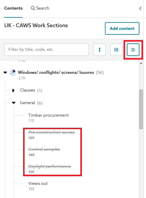 This option will not be shown for Uniclass Work Sections-based content sets; it will be shown for all other content sets, including Uniclass Preliminaries content sets.