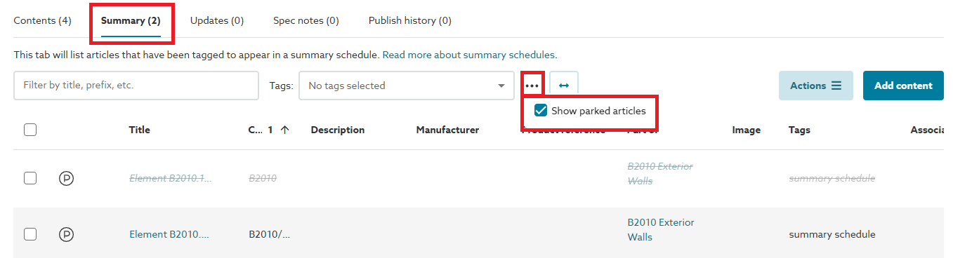 This setting does not affect the visibility of parked articles/ clauses within the Summary schedule tab/ view. There is a separate, but similar-functioning, setting within this view which can be used independently.