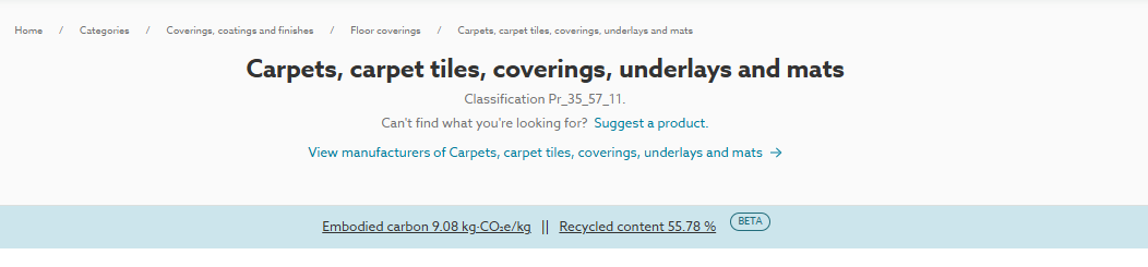 This banner will only show on these landing pages if there are five products or more within this category with embodied carbon values. In addition, these products must be from two or more manufacturers.