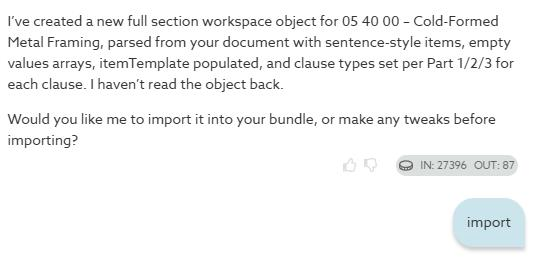 5. Once it has completed, enter 'Import draft' into Copilot.