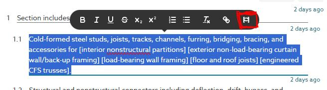 7. To use the [] bracket-to-insert converter, you can either select the text in a row and click the button on the toolbar.