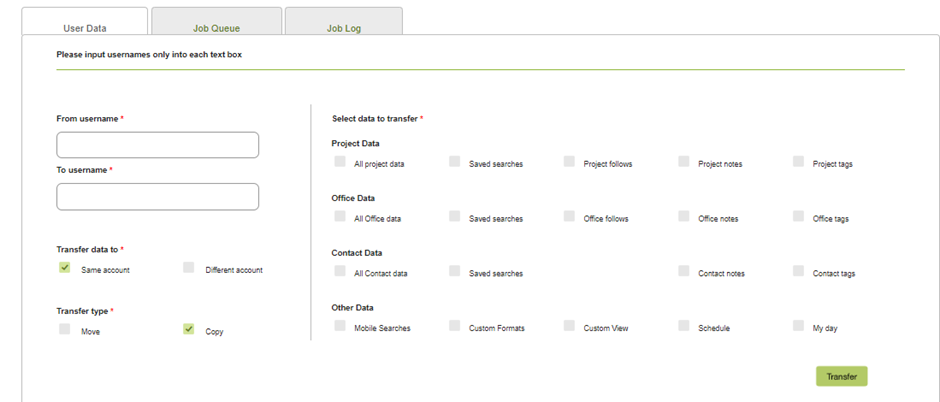 An email will come from the AM requesting the “move” or “copy” of a Glenigan User account to another.