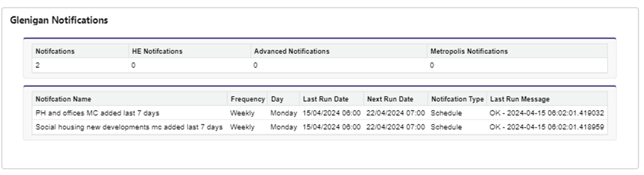 All reports are stored in the mailbox but maybe easier to access and manage via browser at https://outlook.office.com/mail/notifications@glenigan.com/